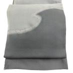 美品 名古屋帯 秀品 八寸名古屋帯 波 金糸 金通し 灰緑 正絹 中古