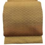 美品 袋帯 秀品 段縞 菱 金通し 山吹茶色 六通 正絹 中古