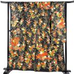 美品 振袖 身丈160.5cm 裄丈62cm S 袷 花車 波 金通し 金彩 黒 正絹 秀品 中古
