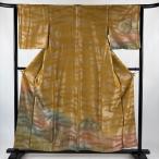美品 付下げ 身丈157cm 裄丈63cm S 袷 花喰い鳥 草花 銀通し 金銀彩 山吹茶色 正絹 名品 一つ紋 中古