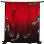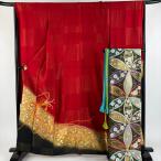 振袖 身丈161cm 裄丈66cm M 袷 蝶 草花 金通し 金銀彩 赤 正絹 秀品 中古