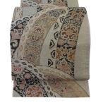美品 袋帯 秀品 華文 花鳥 金通し 箔 ベージュ 六通 正絹 中古