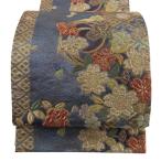 袋帯 秀品 花丸文 幾何学 銀通し 箔 青灰色 六通 正絹 中古