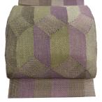 美品 袋帯 秀品 幾何学 金通し 薄紫 お太鼓柄 正絹 中古