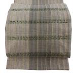 袋帯 秀品 五月みどり 落款あり 夏帯 幾何学 銀通し 金銀彩 灰緑 お太鼓柄 正絹 中古