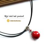 紅玉 シェル 貝 ショート 紐 ネックレス ひも レディース 2連 シンプル 辛口 揺れる ペンダント 和風 ma