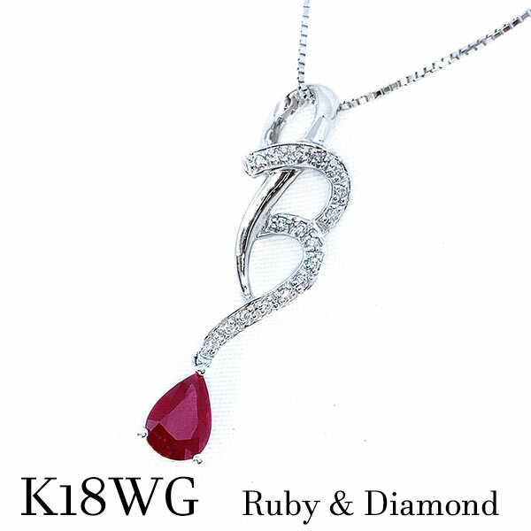 [クーポンで30%オフ]k18wg ルビー ダイヤモンド ドロップ ペンダント ネックレス 赤 0.82cts 0.07cts ジュエリー 宝石 7月誕生石 バースデー 記念日 ギフト プレゼント レディース 還暦 お祝い 鑑定書付き 結婚40周年 紅玉 ヒネリ 捻り ご褒美 18金ホワイトゴールド