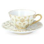 九谷焼 輪花 紅茶カップ&ソーサー 盛金宝相華唐草文 白粒 / 仲田錦玉 ティーカップ コーヒーカップ おしゃれ 高級 ギフト 結婚祝い 内祝い 記念品