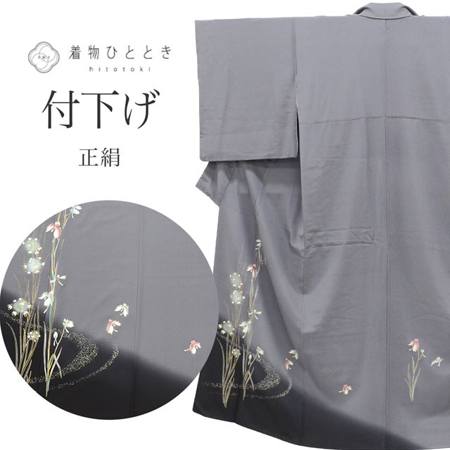 \20%OFFクーポン+P2倍/ 訪問着 リサイクル 着物 中古 付下げ 正絹 仕立て上がり 裄65cm 身丈150cm S グレー色系 花文様 紋付 袷 【 和服 入学式 卒業式 お茶会 お茶席 茶道 結婚式 お宮参り 送料無料 アウトレット 】 tt0672b
