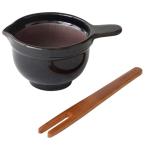 かもしか道具店 なっとうバチ ふつう まぜ棒つき 竹 納豆 納豆鉢 小鉢 萬古焼 日本製 (黒)