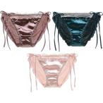 3枚セット サテン生地 ひもパン パンティ レディース ショーツ 紐パン パンツ 下着( L)