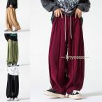 ワイドパンツ メンズ ファッション 秋服 秋物 バギーパンツ ロング丈 ボトムス 紐パン 無地 カジュアル ルーズ