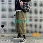 カーゴパンツ メンズ ワークパンツ ゆったり ワイドパンツ 九分丈 チノパン サルエルパンツ ズボン ミリタリー風 ウエストゴム カジュアルパンツ 春秋