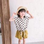 セットアップ キッズ 子供服 子供 女の子 ドット ショートパンツ キュロット 半袖 韓国子供服 ドット柄カットソー×キュロットセットアップ【SU048】
