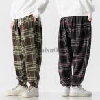 サルエルパンツ メンズ チェック柄 秋服 秋物 ボトムス ワイドパンツ 紐パン イージーパンツ 2024 春