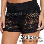 水着 スイムウエア ショートパンツ レディース ボトムス 単品 ショーパン 短パン 花柄 レース 透ける ウエスト紐 ショート丈 ミニ丈 おしゃれ か