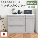 キッチンカウンター レンジ台 幅120 完成品 棚 キャビネット サイドボード 日本製 おしゃれ 大理石調 アンティーク シンプル モダン 可愛い レトロ 高級感