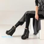 ショートブーティー ブラック レディース 秋冬 前厚 厚底 8cm シンプル サイドジップ 太ヒール ウェッジソール ショートブーツ ショートブーティー