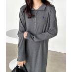 ワンピース RANAN/solleim別注「U.S.POLO ASSN.」 ポロ衿長袖リブワンピース