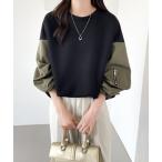 トレーナー スウェット 異素材スリーブ切替プルオーバー レディース