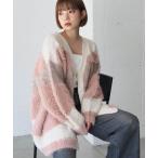 カーディガン ノーカラー 配色 ニットコート レディース
