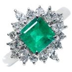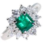 エメラルド リング/指輪 0.770カラット プラチナ900 PT900 濃厚なグリーン 豪華ダイヤ取り巻き /緑(グリーン)/セレクションジュエリー・新品/届10/1点もの