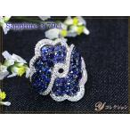 サファイヤびっしり上質 3.79ct 大きく雄大なデザインK18WGリング 指輪 受注品