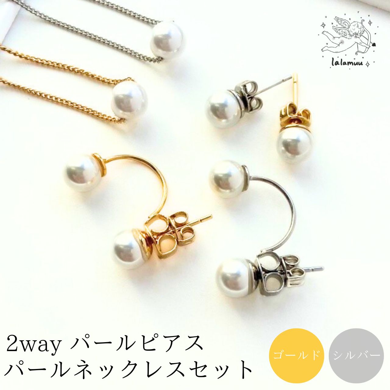 【5%OFFクーポン】2way ピアス ネックレス セット 4000円 5000円 C型 1粒 パール ゴールド シルバー シンプル 使いやすい 上品 高見え 母の日 結婚祝い 結婚式 ギフト プレゼント 冠婚葬祭 20代 30代 40代 50代 オケージョン フォーマル クリスマス ラッピング バレンタイン
