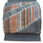 袋名古屋帯 秀品 縞 絞り 青灰色 正絹 中古