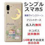 シンプルスマホ5 ケース A001sh カバー ラインストーン かわいい らふら 名入れ 月と街