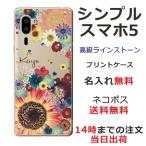 シンプルスマホ5 ケース A001SH ラインストーン かわいい フラワー 花柄 らふら 名入れ 押し花風 フラワーアレンジ カラフル