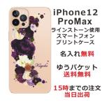 iPhone12 Pro Max ケース アイフォン12プロマックス カバー ラインストーン かわいい らふら フラワー 花柄 押し花風 クレッシェンドパープル