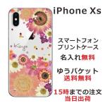 iPhone Xs ケース アイフォンXs カバー ラインストーン かわいい らふら フラワー 花柄 押し花風 フラワーアレンジピンク
