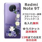 Redmi Note 9T 5G ケース レッドミー ノート9T カバー ラインストーン かわいい フラワー 花柄 らふら 名入れ 押し花風 ブルーアレンジ