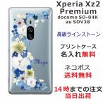 Xperia XZ2 Premium ケース SO-04K SOV38 エクスペリアXZ2プレミアム カバー ラインストーン かわいい らふら フラワー 花柄 押し花風 クレシェンドブルー