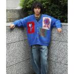 カーディガン HOOK -original- 絵画パッチワーク風長起毛カーディガン メンズ レディース