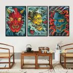 3枚セット 絵画 インテリア ファブリック 絵 和風 絵画 アートフレーム 能面 般若面 鬼 鬼の面 30×40cm アートパネル