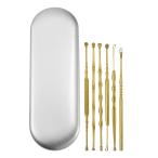 uxcell VOCOSTE コードレスヘアアイロン 耳掃除道具セット イヤークリーナー 収納ケース付き チタン ゴールドトーン 6個