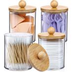 アクリルケース コットン収納 4個 メイクケース 竹蓋付き 便利 綿棒ケース コンパクト 化粧品ボックス 綿棒入れ 小物入れ収納ケース メイクボックス 薬ケース
