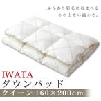 イワタ ダウンパッド/羽毛敷きパッド クイーンサイズ160×200cm マスコビーダックダウン使用 軽くてあったか羽毛 iwata 羽毛 敷きパッド