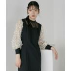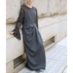 ドレス 袖チュール使い裾切替デザインワンピースドレス「Callarus」