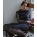 ドレス 「Callarus」スタンドカラーレース切替デザインワンピースドレス