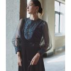 ドレス 刺繍切り替えプリーツデザインワンピースドレス