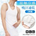 タンクトップ メンズ インナー 2枚組 ランニング シャツ ノースリーブ 肌着 冷感 吸汗 速乾 涼しい 薄手 夏 無地 フライス編 男性