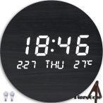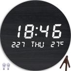 壁掛け時計 掛け時計 LED時計 デジタル電子時計 おしゃれ 木目調 USB給電 8000mAh充電式 温度 光る 北欧 インテリア 置き時計 卓上