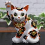 開運 右手 招き猫 置物 九谷焼 横座り招き猫 金三毛 開店祝い ギフト