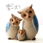 ふくろう 置物 陶器 オブジェ 親子 フクロウ 置き物 雑貨 おしゃれ かわいい 家族 卓上 玄関 風水 開運 縁起物 陶器のいろどり梟ファミリー