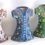 トルコ陶器 伝統衣装カフタン Mサイズ H22×W16×D12cm フラワーデザイン ターコイズブルー