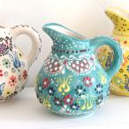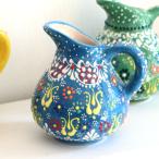 トルコ陶器 ミルクピッチャー 花瓶 高さ10×直径10cm フラワーデザイン ターコイズブルー