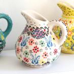トルコ陶器 ミルクピッチャー 花瓶 高さ10×直径10cm フラワーデザイン ホワイト